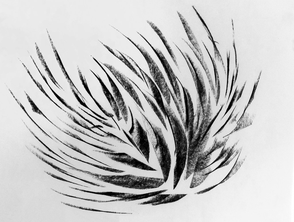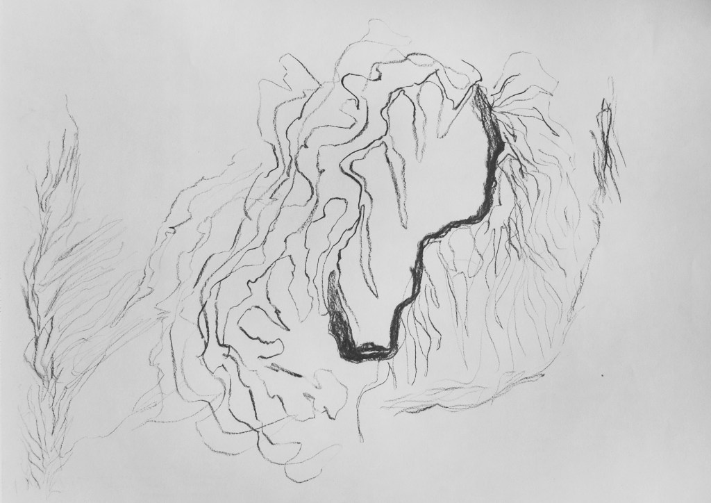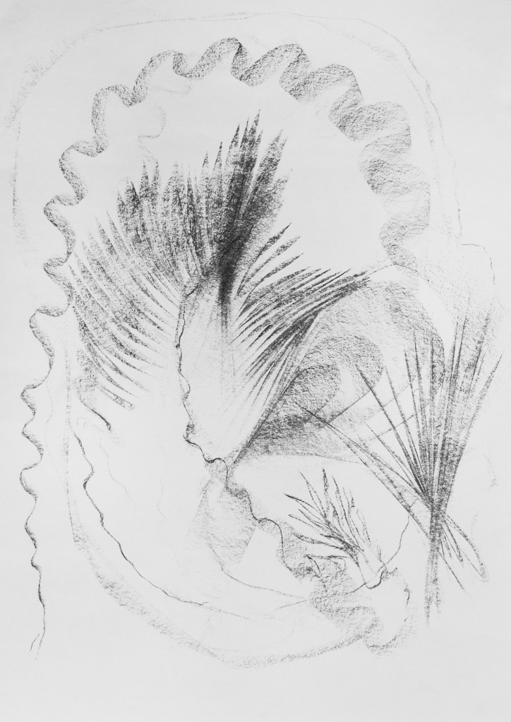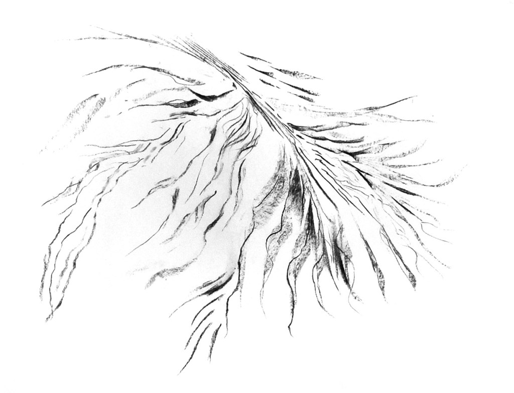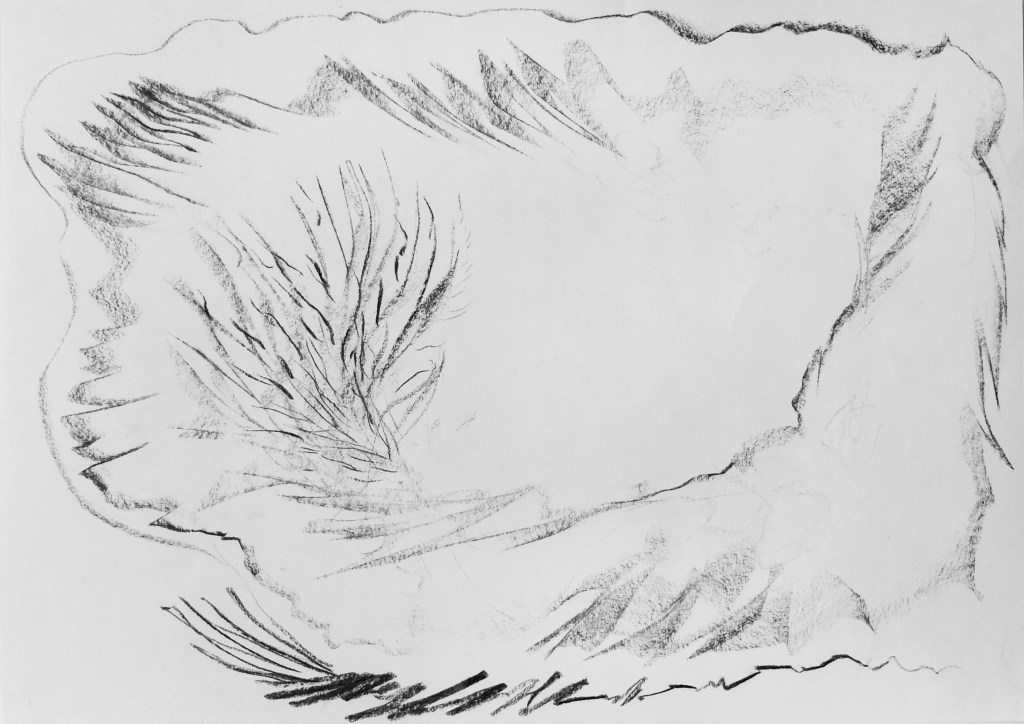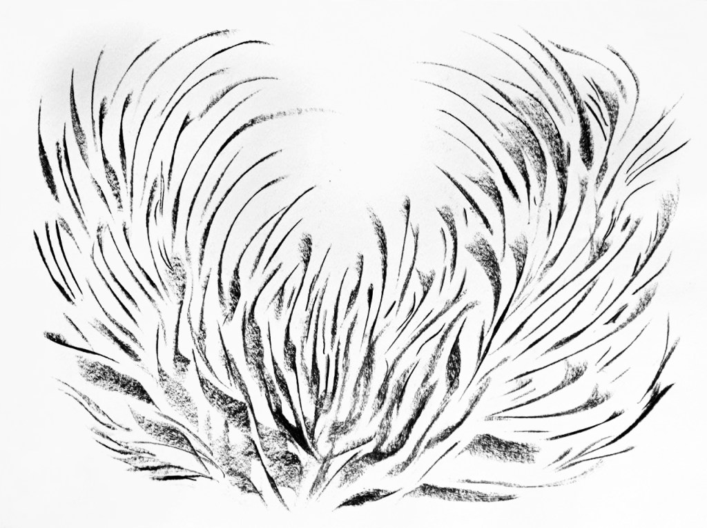 Each charcoal drawing is the translation of the rhythm into figures and shapes found in the songs perceived in an altered state of consciousness induced by psilocybin. Charcoal on paper 42 x 29,7cm